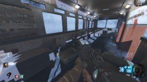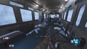 This is the Tranzit Bus challenge, which is an extremely difficult challenge due to its small size. This is the Bus from Tranzit, but the Origins crew are riding in it. The Bus is surrounded by lots of Thick Tranzit fog and only has Quick Revive, Juggernog, and the Mystery Box.